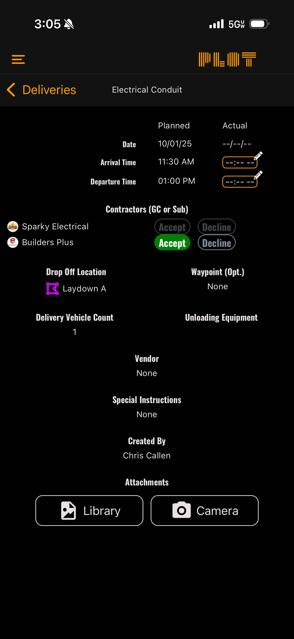 When a Trade Contractor makes a request for a delivery, GC Leads will be notified via text or email depending on Notification preferences.