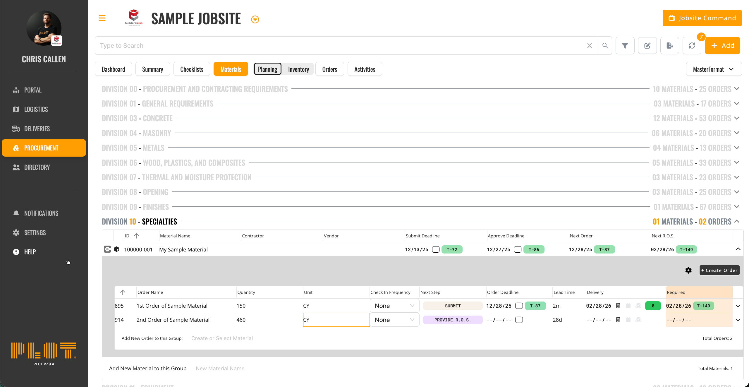 PLOT treats Submittals, Materials, and Order as associated but inherently different objects. This might be the part of PLOT with the largest learning curve, but we assure you that once this framework is understood, you will love the flexibility and automation this allows for.