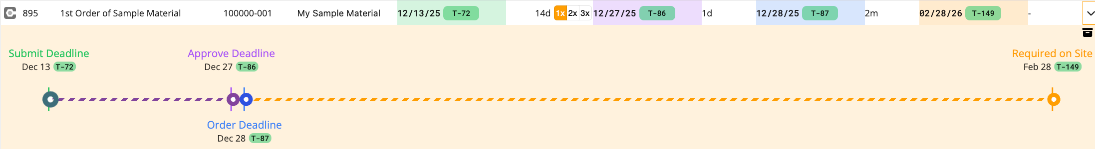 Calculation: Required On Site date - Lead Time = Order Deadline